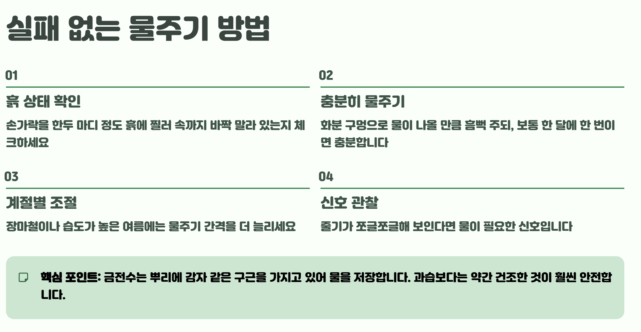 💧 실패 없는 금전수 물주기: 핵심은 '무관심'