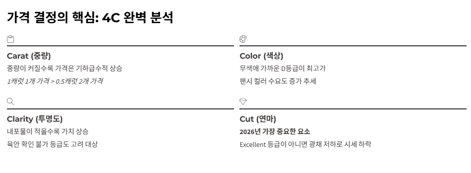 2026년 현재, 다이아몬드 시세는 어떻게 형성되어 있으며 구매 시 무엇을 고려해야 할까요? 전문가의 시각으로 핵심 정보를 정리해 드립니다.