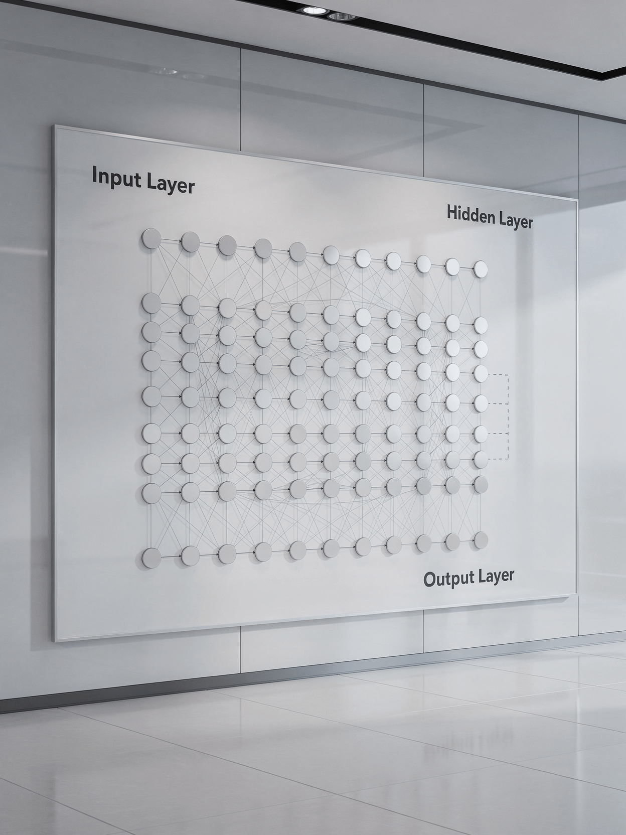 딥러닝의 핵심은 **'인공신경망'**입니다. 우리 뇌 속에 신호를 전달하는 '뉴런'이 있듯이, 딥러닝 모델 안에는 여러 단계의 층이 존재합니다.