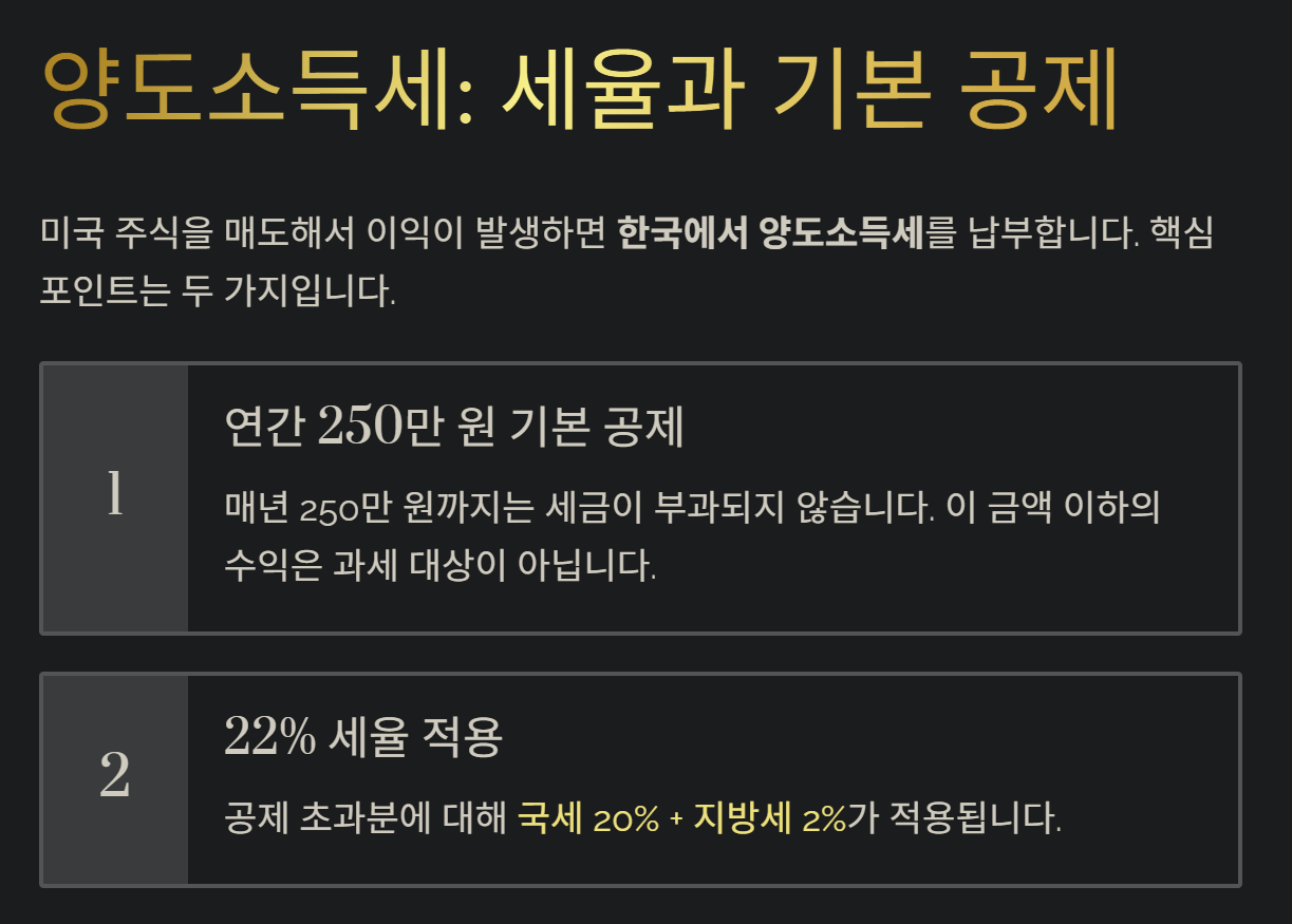 이 글에서는 미국 주식 세금을 기준으로, 실제 적용되는 세율과 금액 예시를 중심으로 내가 직접 정리해본 내용을 풀어보려 한다고 생각하며 정리했다.