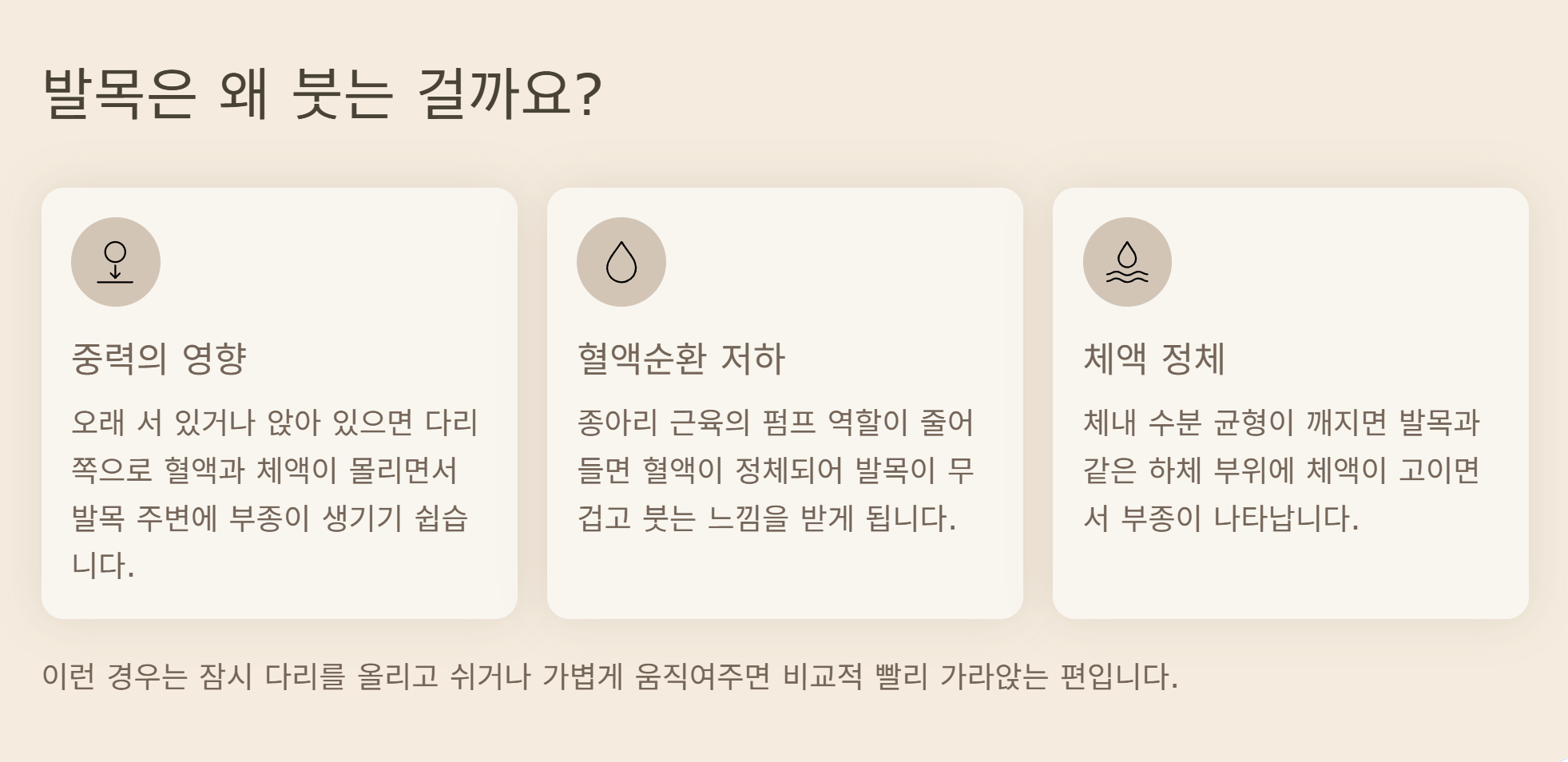 하지만 이런 발목 붓기가 자주 반복되다 보니 단순한 피로인지, 아니면 몸이 보내는 신호인지 궁금해지기 시작했습니다. 발목이 붓는 이유는 생각보다 다양했고, 상황에 따라 의미가 달라졌습니다.