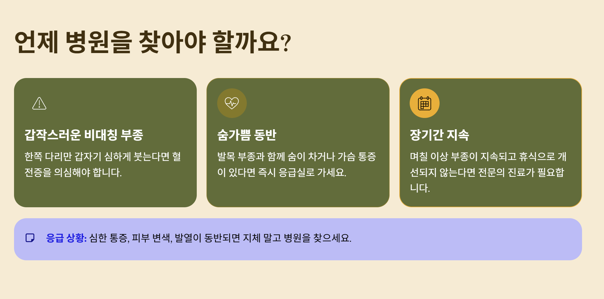 만약 숨이 차거나 가슴 통증이 동반되면서 발목이 붓는다면 지체 말고 병원을 찾으시길 당부드립니다. 오늘 내용이 여러분의 가벼운 발걸음을 되찾는 데 도움이 되었기를 바랍니다.