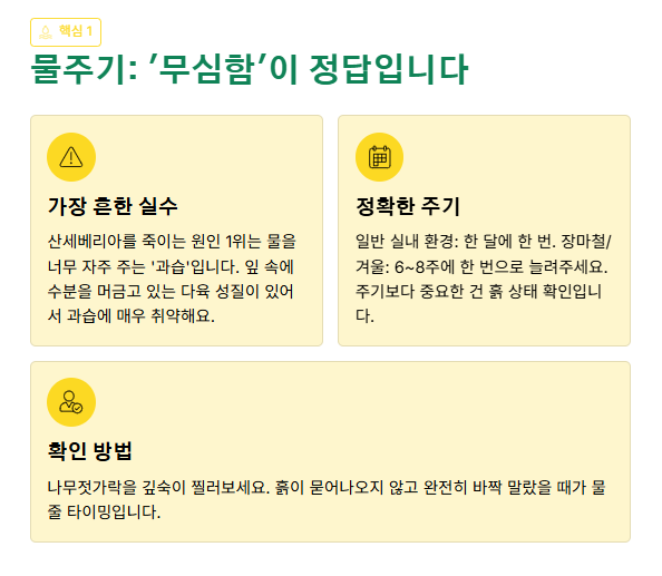 1. 산세베리아 물주기: '관심'보다는 '무심함'이 핵심
