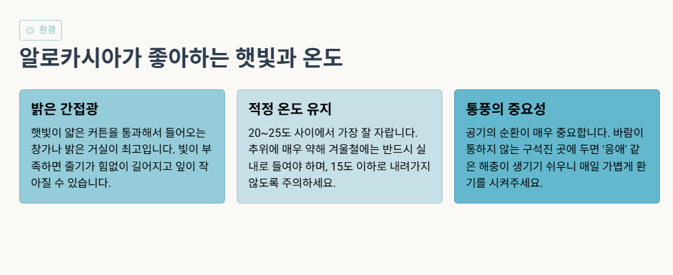 3. 알로카시아가 좋아하는 햇빛과 온도는?