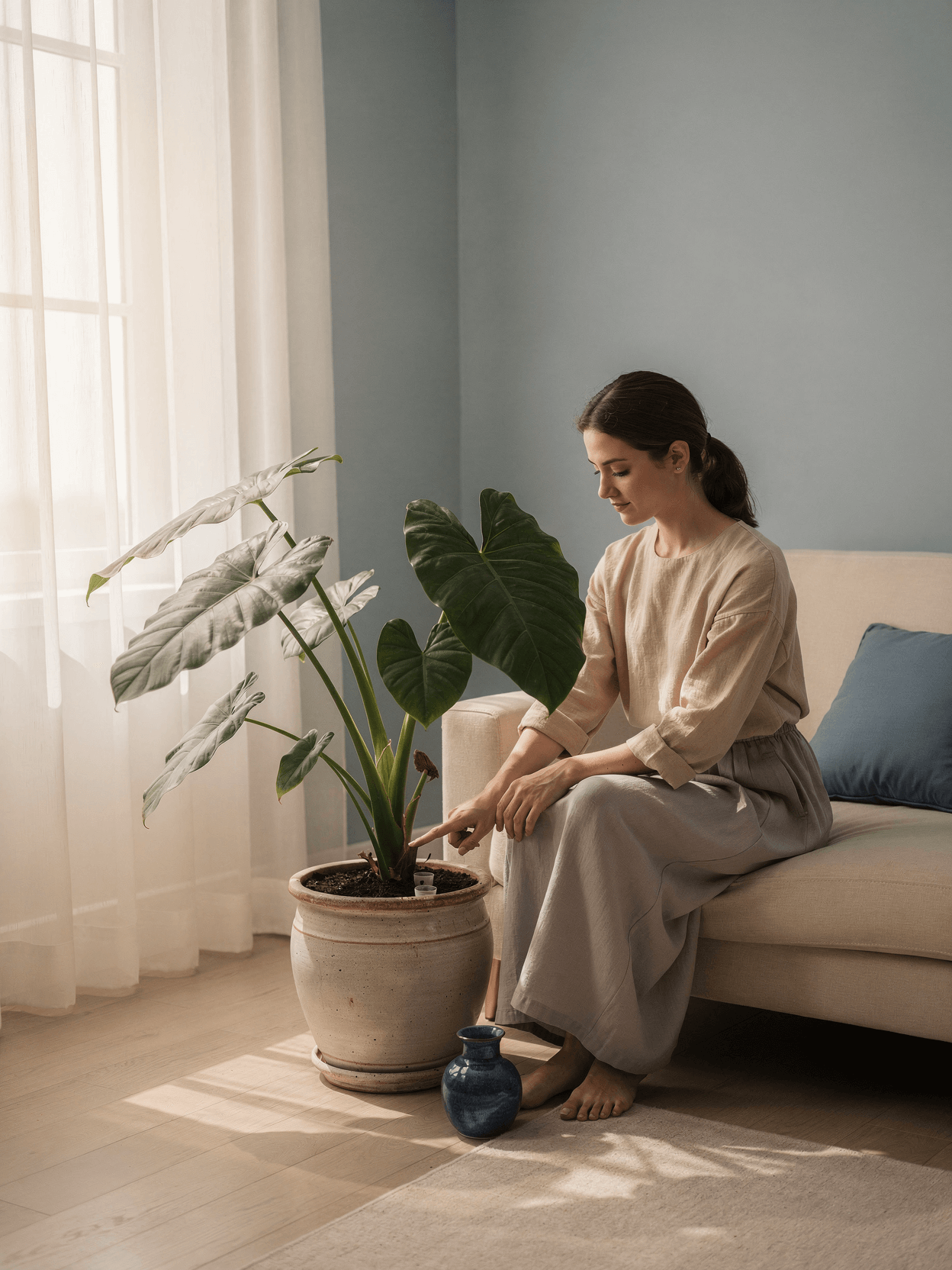 - 겨울철 관리: 날씨가 추워지면 알로카시아는 성장을 멈추고 휴면기에 들어갑니다. 이때는 물주는 횟수를 평소보다 절반 이하로 줄여야 합니다.