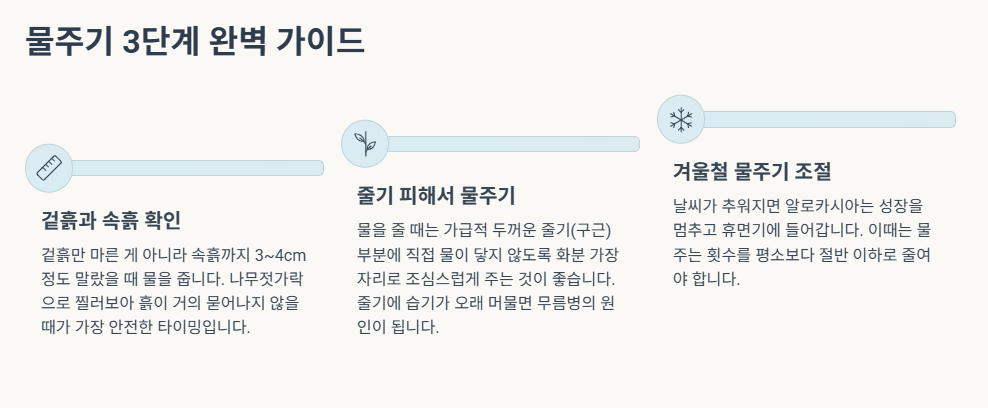 2. 실패 없는 알로카시아 물주기: 무름병 예방이 우선