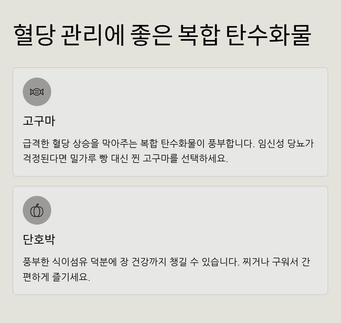 급격한 혈당 상승을 막아주는 복합 탄수화물 식품입니다. 임신성 당뇨가 걱정된다면 밀가루 빵 대신 찐 고구마나 단호박을 선택해 보세요. 풍부한 식이섬유 덕분에 장 건강까지 챙길 수 있습니다.