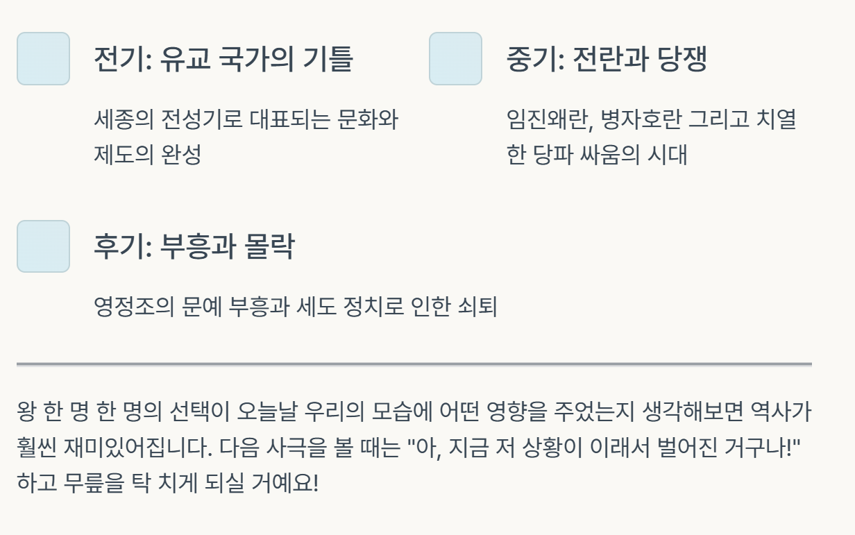 오늘 정리해 드린 계보가 여러분의 역사 상식을 한 뼘 더 키워주는 좋은 가이드가 되었길 바랍니다. 다음에 사극을 볼 때는 오늘 본 계보를 떠올리며 "아, 지금 저 상황이 이래서 벌어진 거구나!" 하고 무릎을 탁 치게 되실 거예요!