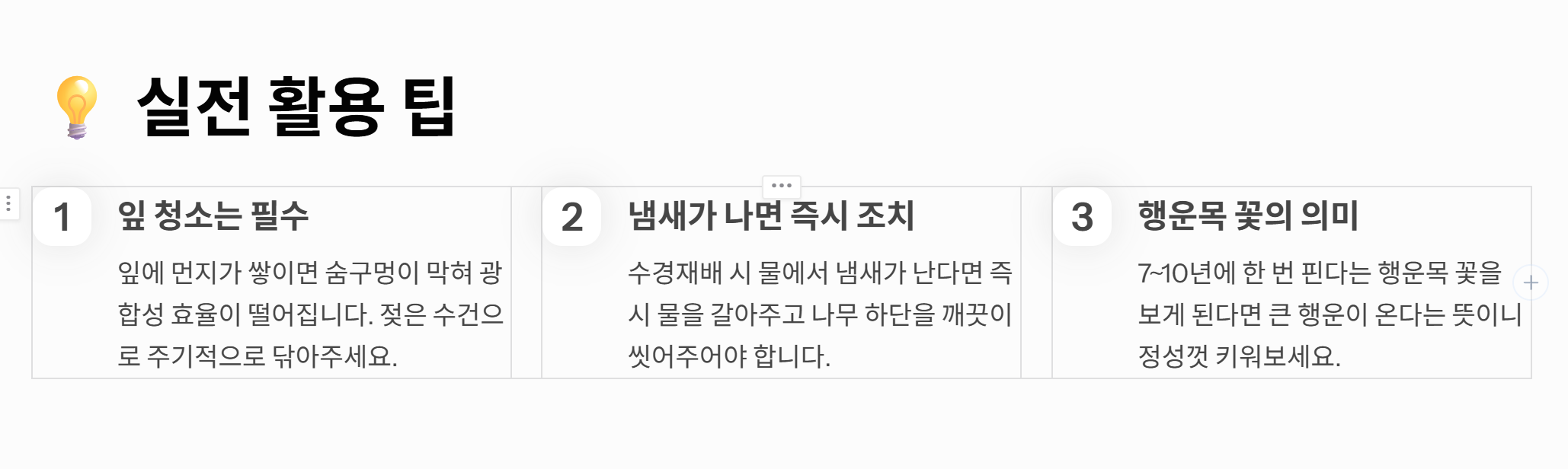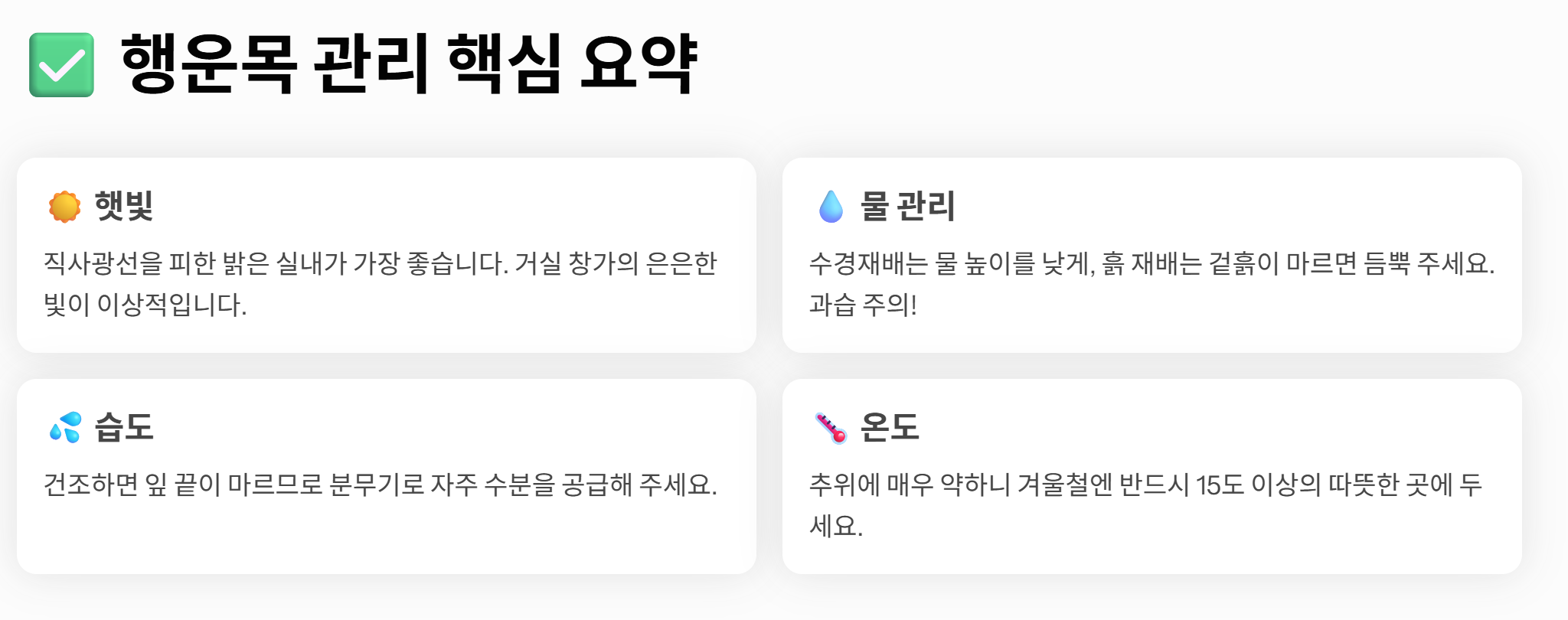 ✅ 행운목 관리 핵심 요약