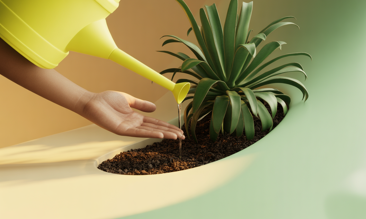 행운목 키우기에서 가장 많이 실수하는 부분이 물 주기다. 겉흙이 마르기도 전에 물을 주면 뿌리가 약해질 수 있다.